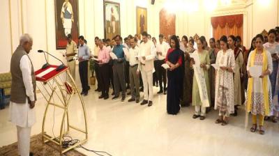 राज्यपाल मंगुभाई पटेल ने अधिकारी-कर्मचारियों के साथ गाया “वंदे मातरम्”