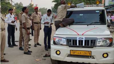 अवैध बूचड़खानों के खिलाफ हिंदू संगठन का निगम घेराव, पुलिस रोकने पर हनुमान चालीसा पाठ