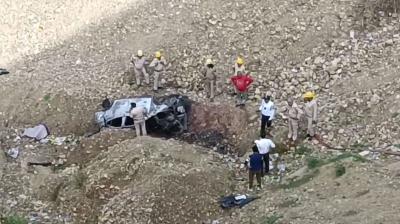 खाई में गिरी कार, आग लगते ही दो जिंदगियां खत्म—चिंतपूर्णी हादसा