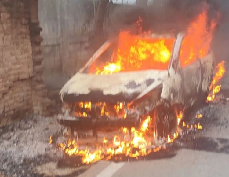 जलकर खाक हुई कार, लोग सहमे