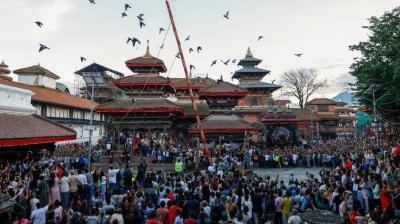 काठमांडू के कुमारी देवी मंदिर में इंद्र जात्रा उत्सव मनाने के लिए भक्तों की भारी भीड़