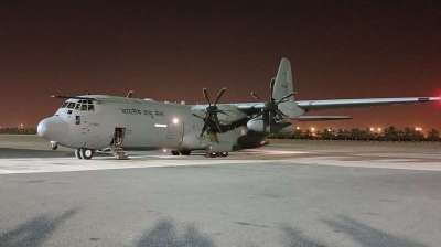 मृतकों के शव लेकर कोच्चि एयरपोर्ट पर उतरा सुपर हरक्युलिस